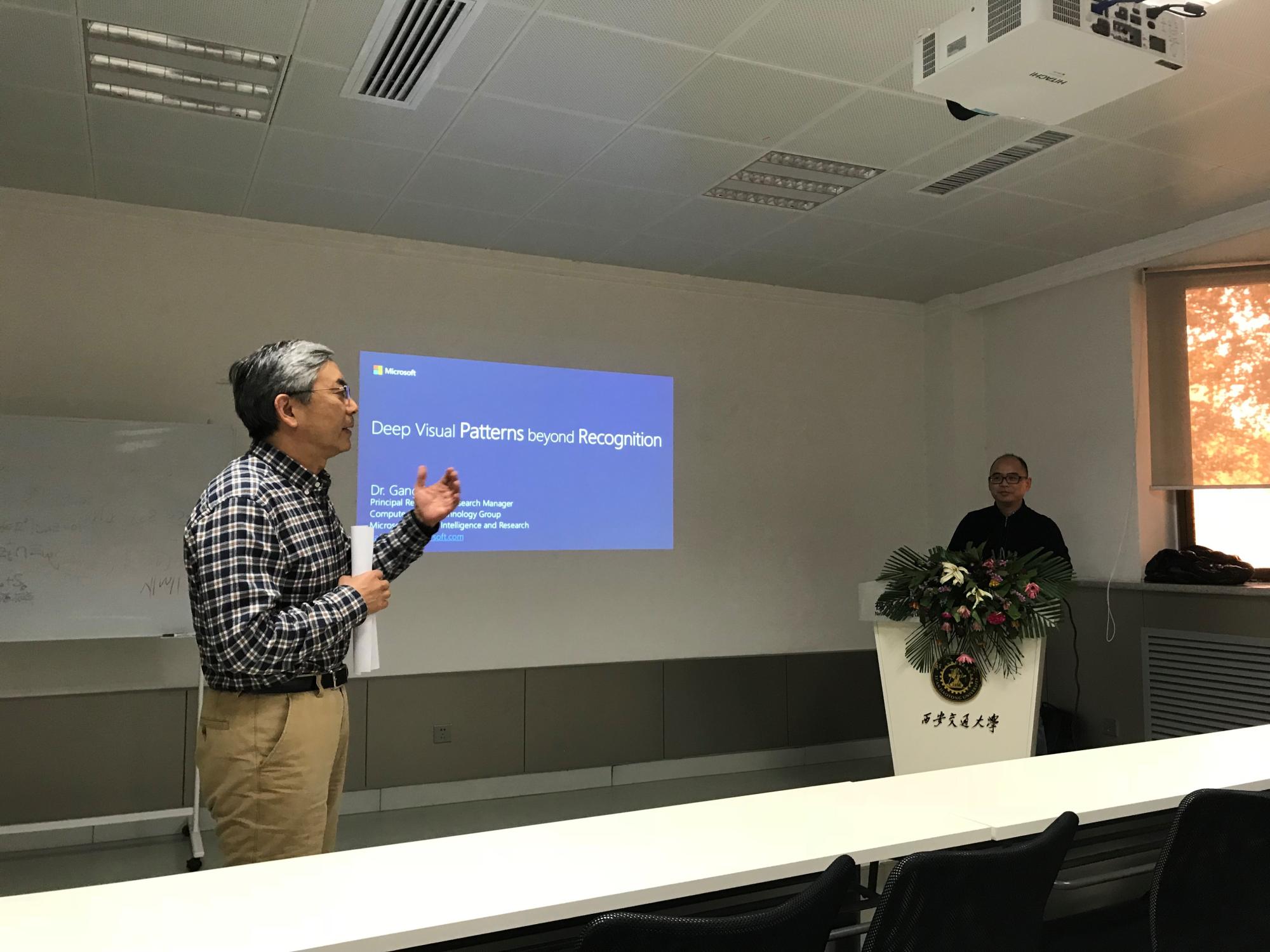 2017年12月15日,西安交通大学人工智能与机器人研究所(以下简称人机所)邀请美国微软研究院首席研究员/研究经理华刚博士为人机所师生做了题为“Deep Visual Patterns beyond Recognition”的学术报告。此次报告在人机所“周五学术报告讨论会”上举行,讨论会由所长郑南宁教授主持,华刚博士在报告中介绍了美国微软研究院当前在计算机视觉领域的最新进展,并就相关热点问题与参会师生进行了深入讨论和交流。