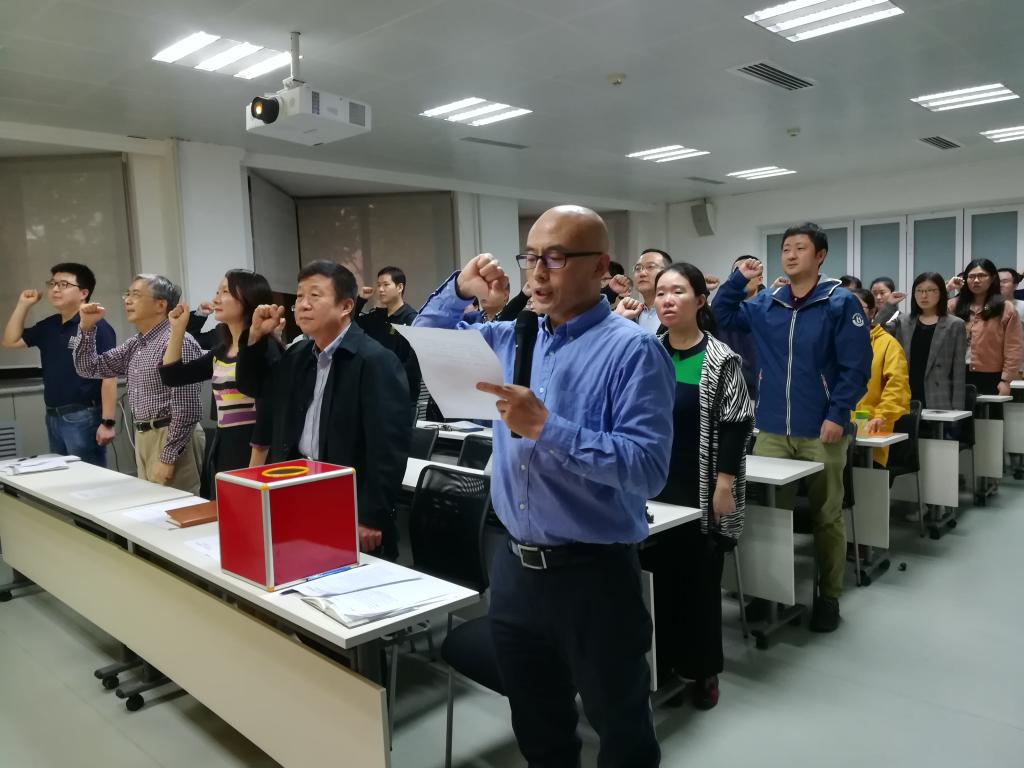 大会首先进行重温入党誓词仪式,由兰旭光同志领誓,党员代表庄重严肃而又激情澎湃地宣读了入党誓言。兰旭光同志向大会报告了威廉希尔中国官网党总支的筹备工作和过程,梁莉书记代表学部党委宣读了对威廉希尔中国官网党总支委员候选人的批复意见。大会一致审议通过了选举办法、监票人及计票人名单。在监票人刘跃虎同志的主持下,清点代表人数、检查票箱、分发选票,之后30位党员代表按照顺序依次投票进行选举。