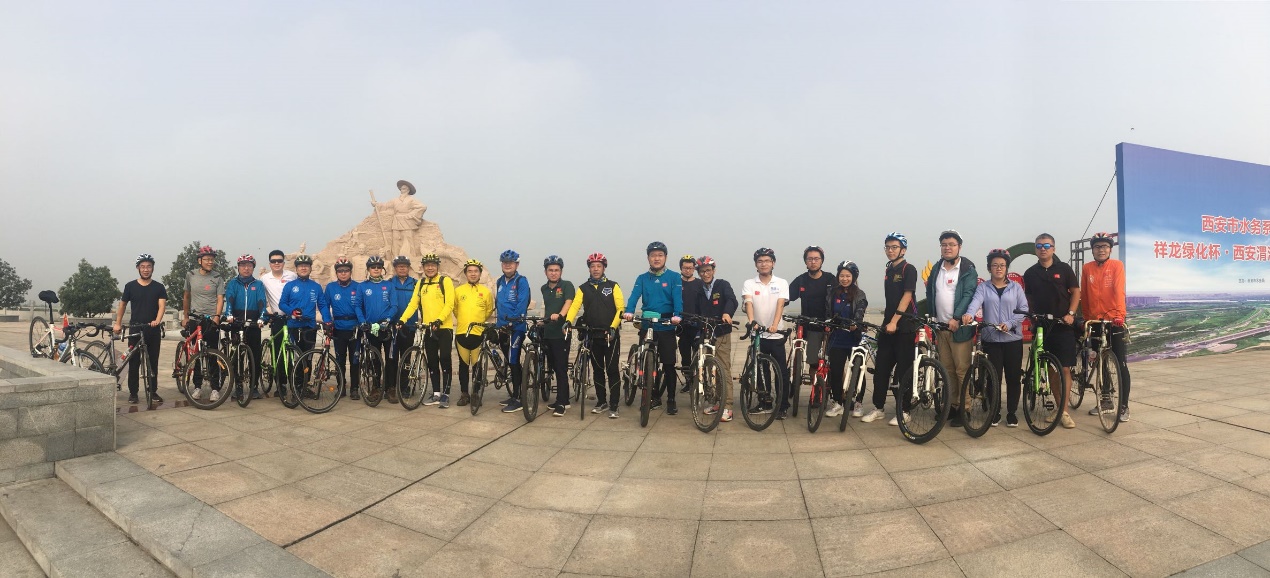 2019年10月2日,威廉希尔中国官网举办了以“不忘初心,砥砺前行--70公里贺伟大祖国70周年华诞”为主题的骑行体育活动。上午八时,三十余名师生从兴庆校区四大发明广场集合出发,沿渭河河堤路一路向西骑行到创新港,下午三点从创新港四号楼泓理楼出发返回兴庆校区,往返骑行距离约70公里,共同庆祝伟大祖国建国70周年。