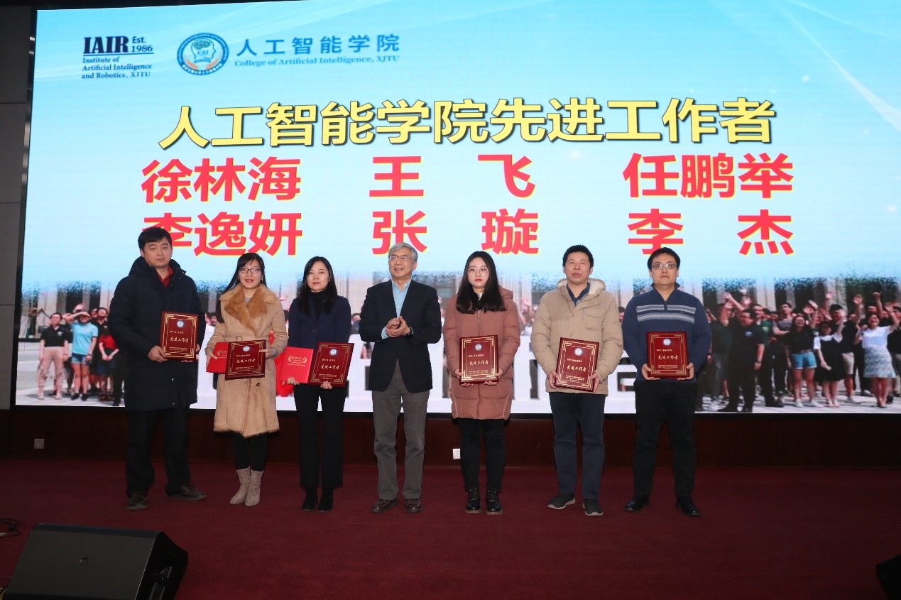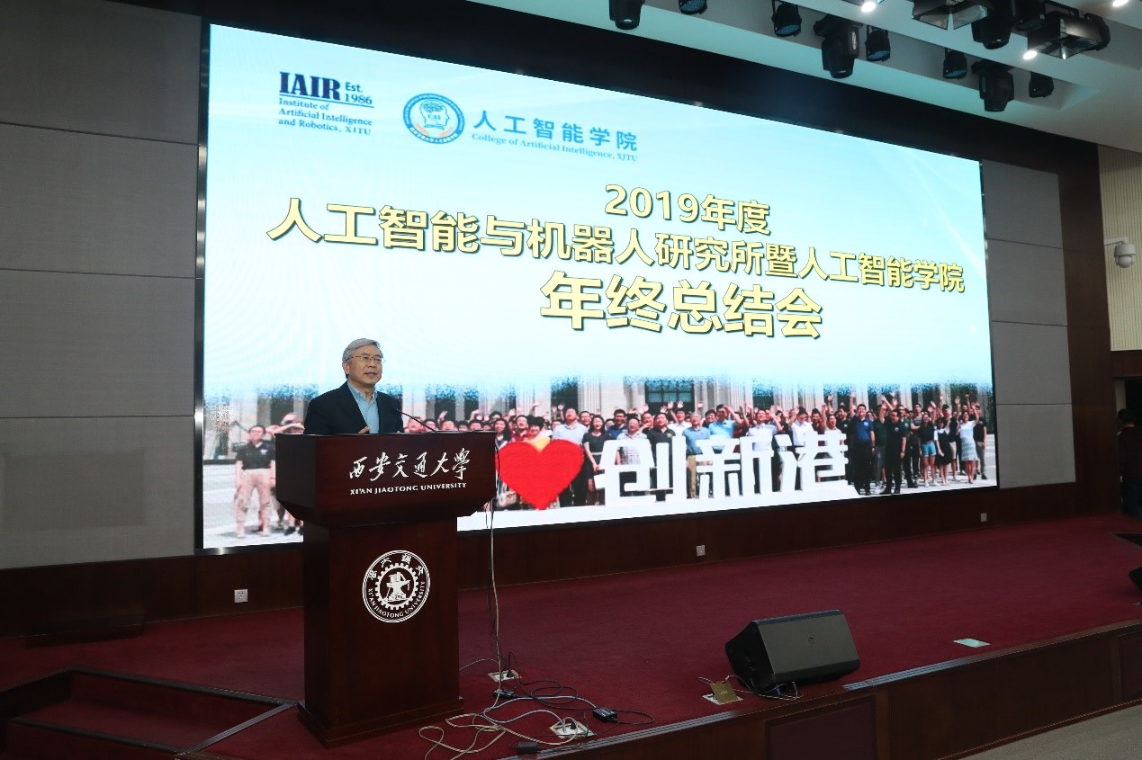 2020年1月17日,西安交通大学人工智能与机器人研究所暨威廉希尔中国官网2019年度年终总结会顺利召开。研究所全体师生参加了此次大会,特邀嘉宾清华大学孙富春教授、中科院自动化所胡占义研究员、浙江大学刘妹琴教授、潍柴动力智能车研发主任王学鹏、西安交通大学教务处徐忠锋处长、科研院黄忠德常务副院长、人力资源部张磊副部长和电信学部梁莉书记一同出席了会议。会议主要内容包括研究所2019年度工作总结、特邀嘉宾报告、研究生学术报告、先进师生表彰奖励和学生俱乐部换届等活动。威廉希尔中国官网常务副院长辛景民教授、人工智能与机器人研究所副所长刘跃虎教授、人工智能学院书记兰旭光教授主持了会议。