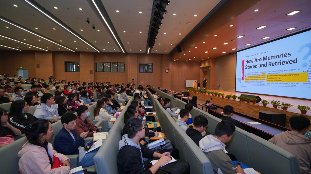 伴随着现场热烈的掌声,“人工智能与科技革命”系列主题讲座正式开讲。毕彦超教授首先作了一场题为“人类大脑知识表征(Knowledge Representation in the Human Brain)”的报告,以一段有关“感官直接感受的知识”的科幻短片为开头,围绕着人脑知识表征系统这一核心,毕彦超教授介绍实验室的一些工作,这些工作使用认知、神经成像和神经心理学方法,对于健康的测试者、感觉缺失的个体(失明和聋哑)或脑损伤的个体进行研究。研究结果指出,一个高度分布式的系统包含两种不同类型的信息编码:一种基于分布式感官体验,以及另一种基于语言。报告深入浅出,分享给同学们有关认知科学前沿领域的研究内容。