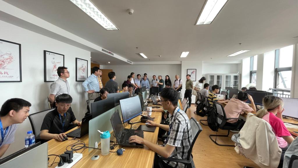 揭牌仪式后,参会人员参观了舜安人工智能研究院科研成果,并就人工智能产教融合人才培养进行了深入研讨。