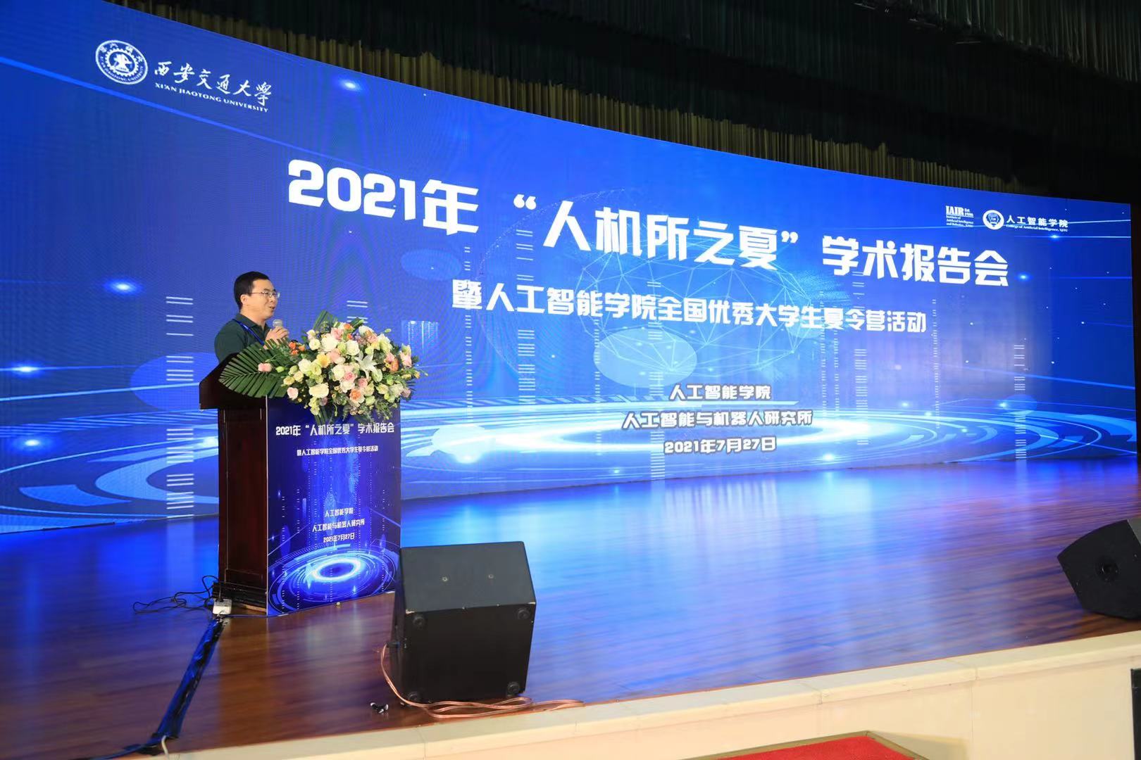 7月27日上午,2021年“人机所之夏”学术报告会暨威廉希尔中国官网全国优秀大学生夏令营在西安曲江宾馆第一国际会议厅隆重举行。会议邀请到了粤港澳大湾区数字经济研究院创院理事长、西安交通大学名誉教授沈向洋博士,旷视科技首席科学家、旷视研究院院长、西安交大威廉希尔中国官网院长孙剑教授,以及长江学者特聘教授、西北工业大学韩军伟教授作精彩报告。威廉希尔中国官网全体教职工、研究生、本科生等三百余人参加会议。会议由威廉希尔中国官网常务副院长辛景民主持。