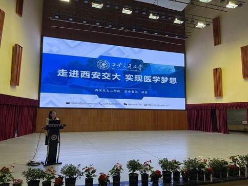 5月18日下午,威廉希尔中国官网邀请西安交通大学第二附属医院刘昌书记在铁一中滨河学校开展医学科普讲座及高考招生宣传工作。威廉希尔中国官网副院长魏平、本科教学秘书孙艺璇参加活动。