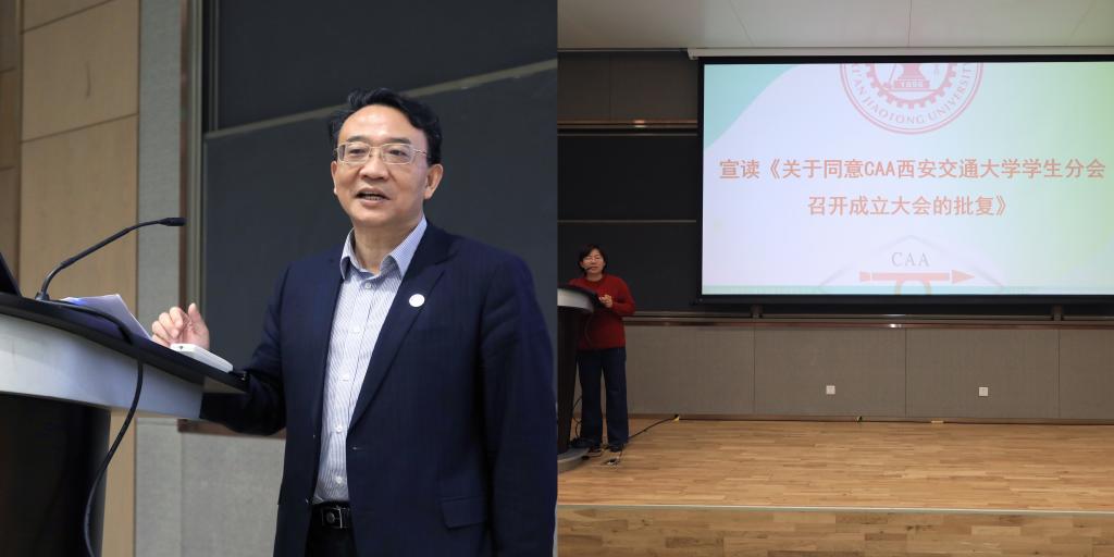 11月5日上午,“中国自动化学会西安交通大学学生分会成立大会暨领军人才学术报告会”在西安交通大学创新港涵英楼5-1E107会议厅顺利召开。本次会议由中国自动化学会主办,西安交通大学承办。中国工程院院士、中国自动化学会理事长、西安交通大学人工智能与机器人研究所所长郑南宁教授,中国科学院院士、陕西省自动化学会理事长、西安交通大学电子与信息学部主任管晓宏教授,西安交通大学党委常委、副校长席光教授,研究生院常务副院长吴宏春教授,校团委书记、学工部副部长李利波,教务处副处长兰剑教授,中国自动化学会秘书长张楠女士、副秘书长王坛女士等出席本次会议。出席会议的还有威廉希尔中国官网和自动化科学与工程学院党政领导、教师和学生代表。会议由威廉希尔中国官网执行院长辛景民教授、自动化科学与工程学院院长杨清宇教授主持。