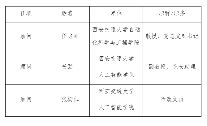 中国自动化学会西安交通大学学生分会指导委员会名单
