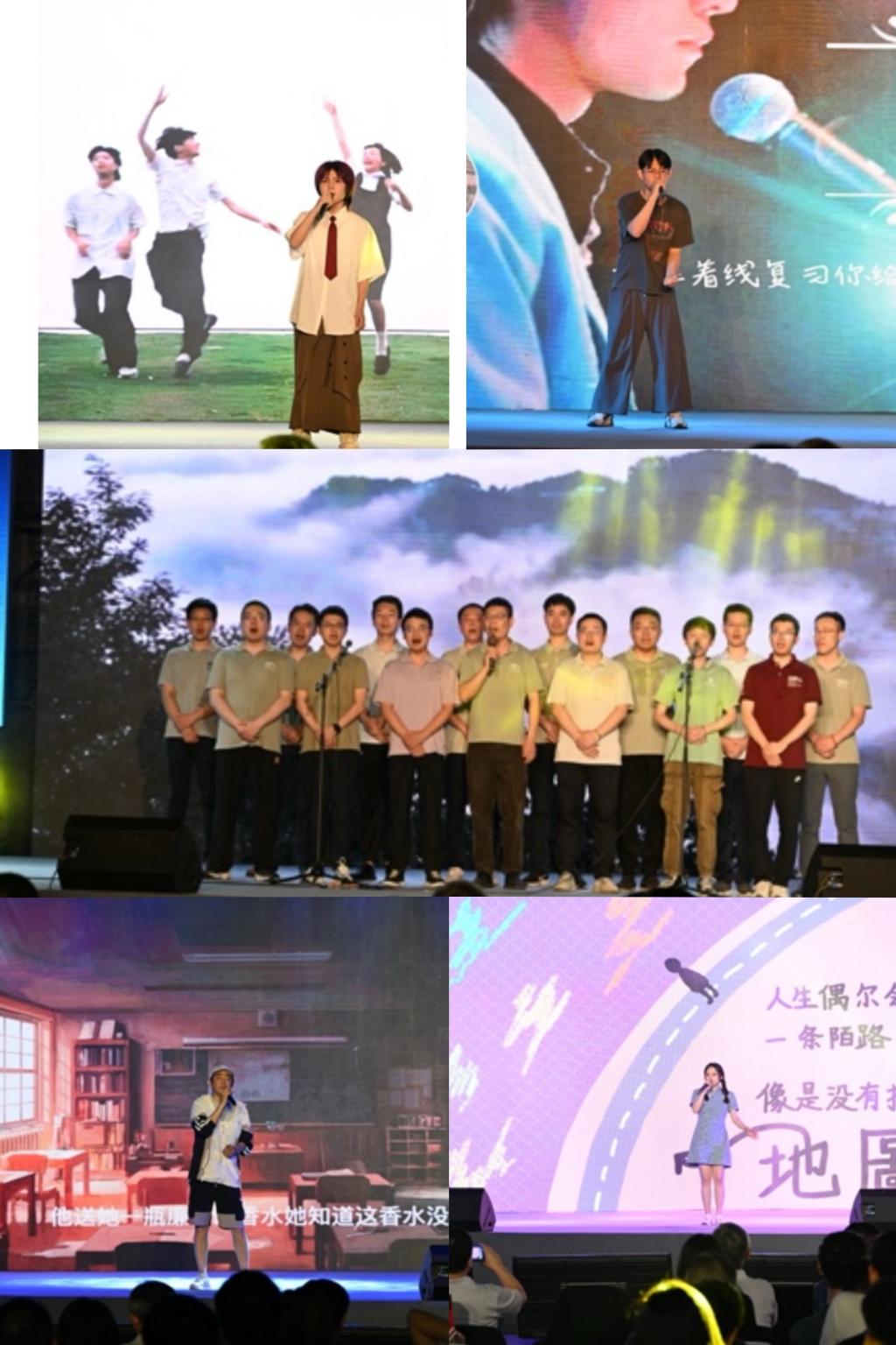 徐霁琛和阳旭同学的《外婆的澎湖湾》为毕业晚会带来了一抹活泼的色彩;贾亦文和陈依依同学的《入海》如同一幕精心编排的舞台剧;陈霸东老师与郑凯中同学的《父子》被赋予了情景剧般的深度和感染力。《咸宁西路的日子》唤起了毕业生们对校园生活的美好回忆;王弋飞同学的《凤凰花开的路口》悠扬而深远;丁宁老师的《好想大声说爱你》激起了毕业生们的深情怀念;《如约而至》传递着对未来的坚定信念;女老师们演绎的《祝你一路顺风》,传递着对学生们未来旅程的美好祝愿。