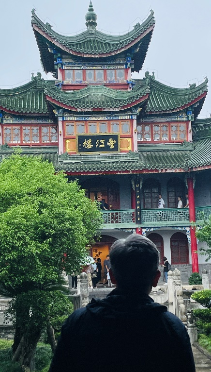 望江楼坐落于古汉台之巅,采用攒尖顶、庑殿顶、歇山顶等多种形制,融合了南北建筑风格,是汉中市作为国家历史文化名城的标志性建筑。站在楼前远眺,半围拱形制,大红廊柱、墨绿琉璃瓦、飞檐层叠,庄重而典雅,使人仿佛置身于当年“汉水东流几千里,秦云北望第一楼”的风采之中。