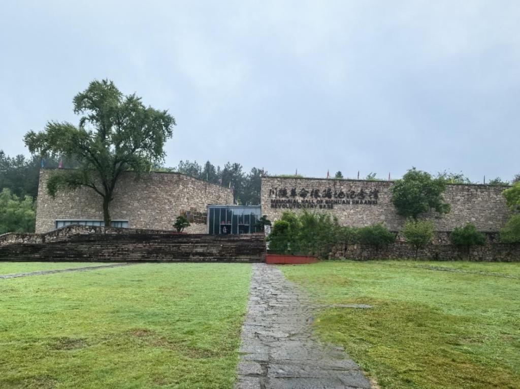 抵达纪念馆门前,山脉腹地,红寺湖畔,一座青石结构的方形建筑巍然矗立,天空中还下着蒙蒙细雨,透过薄薄的细雾,川陕革命根据地纪念馆这几个大字映入眼帘,山侧雄壮的烈士纪念碑静静注视着远方,我们仿佛看到了红四方面军在这片青山绿水间英勇战斗的光辉岁月。