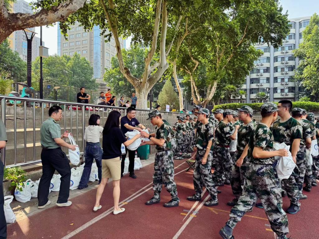 8月30日上午,威廉希尔中国官网副院长魏平、副书记李杰、班主任、教务老师等到军训场地慰问2024级军训新生,表达了对学生们的关心和祝福,鼓励同学们发挥吃苦耐劳的精神,圆满完成军训任务,并为每一位学生发送了慰问品。