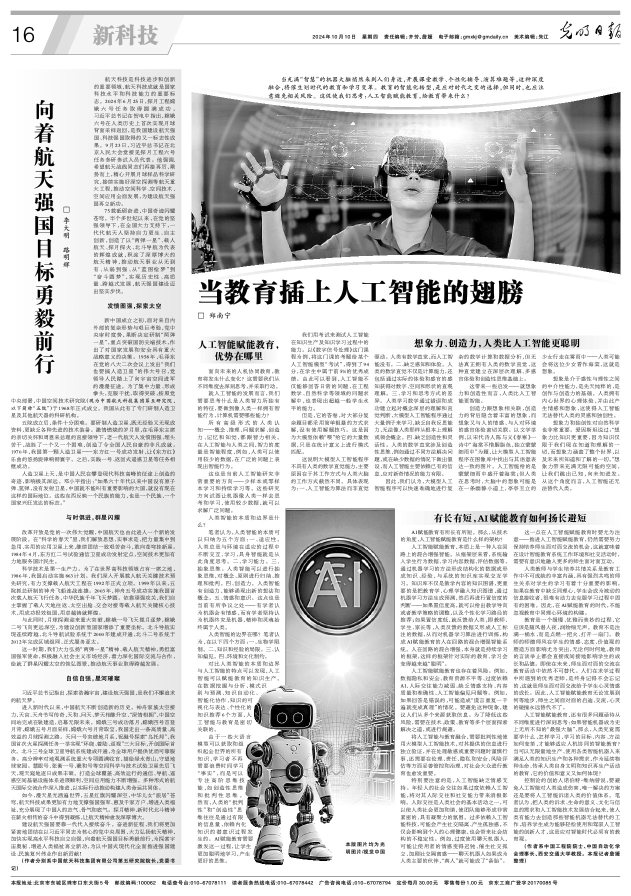 当充满“智慧”的机器大脑悄然来到人们身边,开展课堂教学、个性化辅导、演算难题等,这种深度融合,将催生划时代的教育和学习变革。教育的智能化转型,是应对时代之变的选择,但同时,也应注意避免相关风险。这促使我们思考:人工智能赋能教育,给教育带来什么?