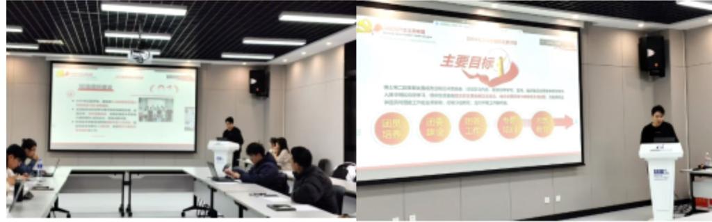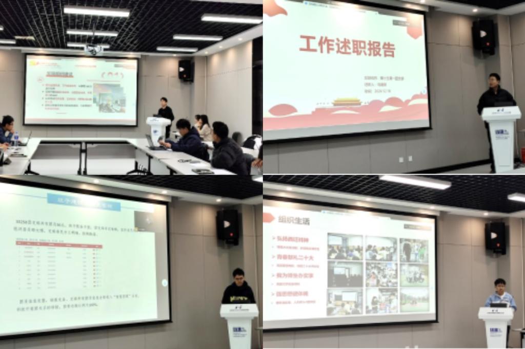 会议伊始,学院团委书记张驰助理教授老师首先对各支部在过去一年的辛勤付出和取得的成果给予了高度肯定,伍虹颖书记和席媛媛书记简要介绍了支部星级评定的标准和流程。此次参与答辩的支部包括博士生第一、第二团支部,2022级硕2245、2246、2247和2248团支部,2023级硕3248、3249、3250和3251团支部共10 个支部。随后学院的十个团支部分别从班子建设、团员管理、组织生活、制度落实等方面的工作和成果进行了全方位的展示。