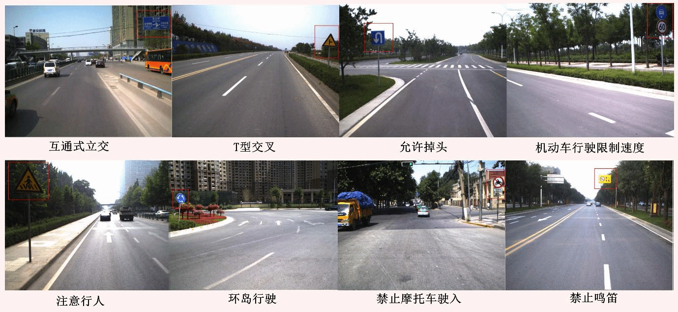 交通标志中包含许多重要的交通信息,如驾驶前方道路状况的改变、速度限制、驾驶行为限制等,适时提供这些信息给驾驶员有利于驾驶员及时反应,保证驾驶安全乃至避免交通事故的发生,因此交通标志识别的应用性研究具有重要的意义。交通标志图像识别数据库分为警告标识、禁令标识、指示标识、指路标识、旅游区标识、道路施工安全标识和辅助标识7个大类,共计72种交通标识,提供了车辆在实际行驶过程中因车辆运动以及其他因素而导致的车载相机劣化图像序列,以及其中出现的交通标志的检测定位与内容识别结果。